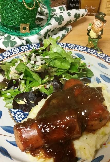 And that is it! I served mine with a light spring mix salad. This is not a complicated dish, hence it is served mostly in pubs or gastropubs as “pub grub.” Which means relatively quick and easy to make in large quantities. I think this can be an easy weeknight meal, let me know what you think. Send pictures of your Bangers & Mash.