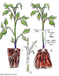 If planting a tomato plant: make sure to pinch off any lower tiered leaves off the plant, in order to expose more roots growing along the stem of the plant. The seedling should be planted deeper than it was in the original container, up to just below the remaining leaves.