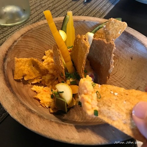 The bourbon had a delicate smoky flavor with a hint of sweetness. It paired very nicely with their Pimento Cheese Dip.