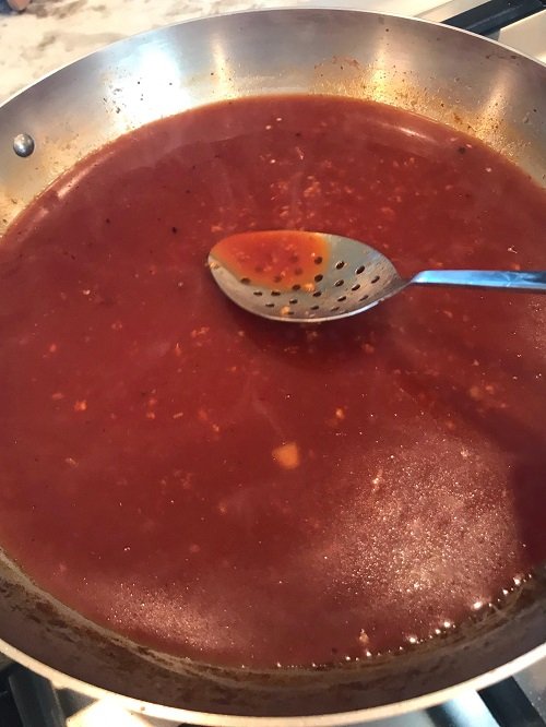 - Place strained liquid in a medium-sized pot and bring to a boil. Cook for 6 minutes or until liquid has reduced to about 2 cups.