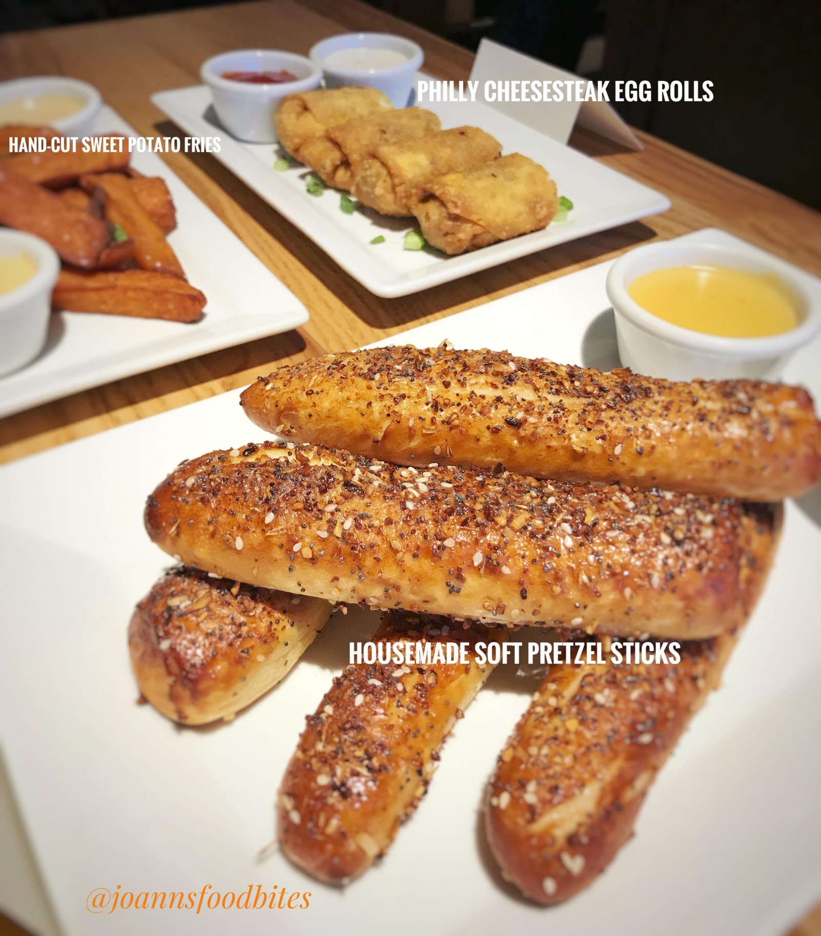 Two of my favorite items are the Philly Cheesesteak Egg Rolls and the Hand-Cut Belgian-Style Fries.