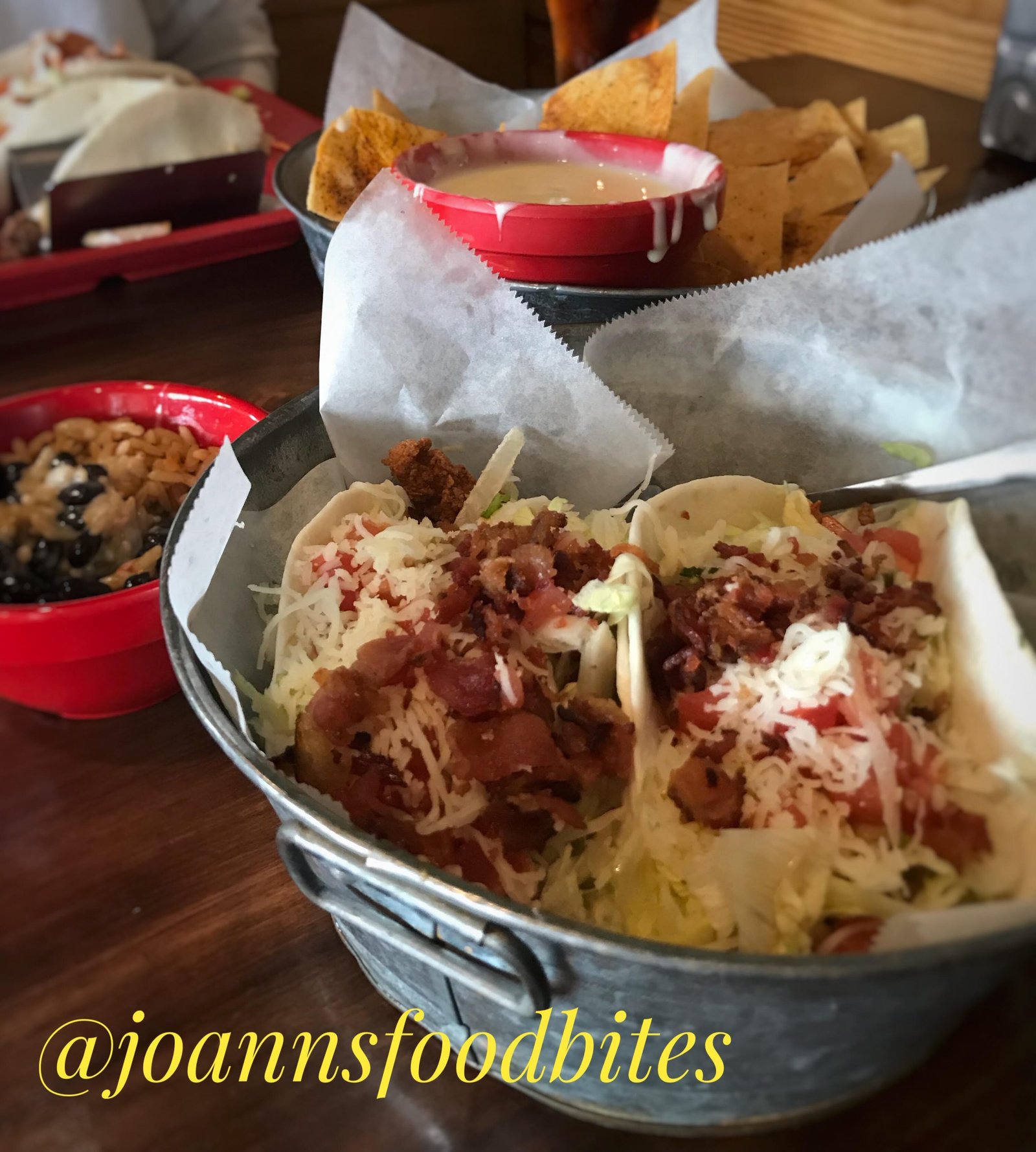 Diving into the Southwest Chicken Club tacos, I found crispy, but tender chicken strips with bacon, lettuce, tomatoes, Monterrey Jack cheese and a smokey honey-chipotle sauce.