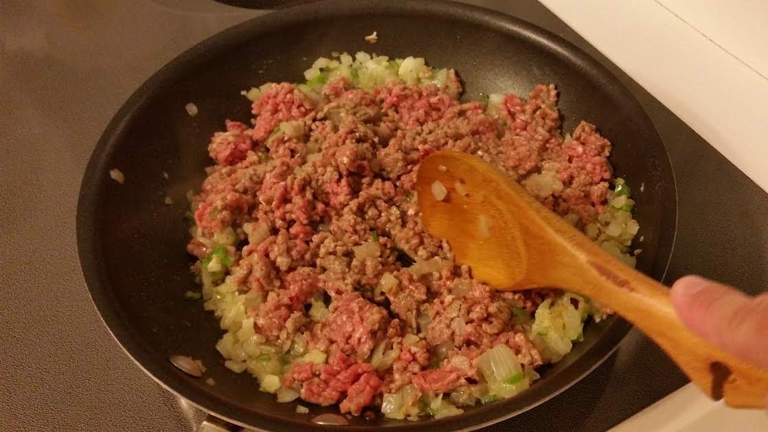 - Brown meat, breaking up the meat, until lightly browned and no longer pink - about 5 minutes.